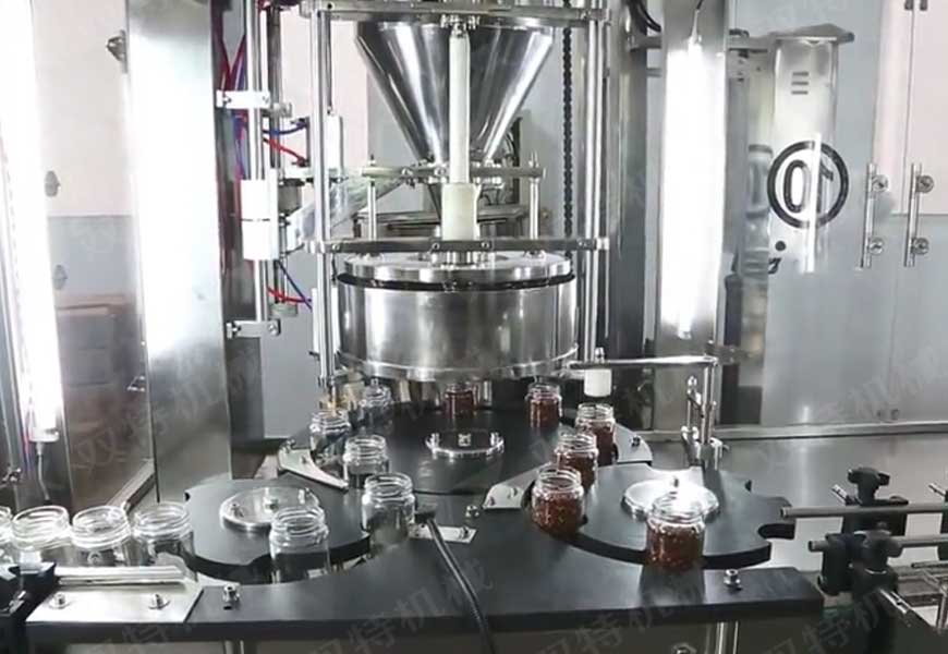 豆豉酱91看片视频APP适用于粘稠酱料,如黄豆酱、麻辣酱、香辣酱、牛肉酱、豆辨酱等,可以搭配真空旋盖、上盖等设备组成颗粒酱料灌装生产流水线,具有调整方便、便于清洁等特点。